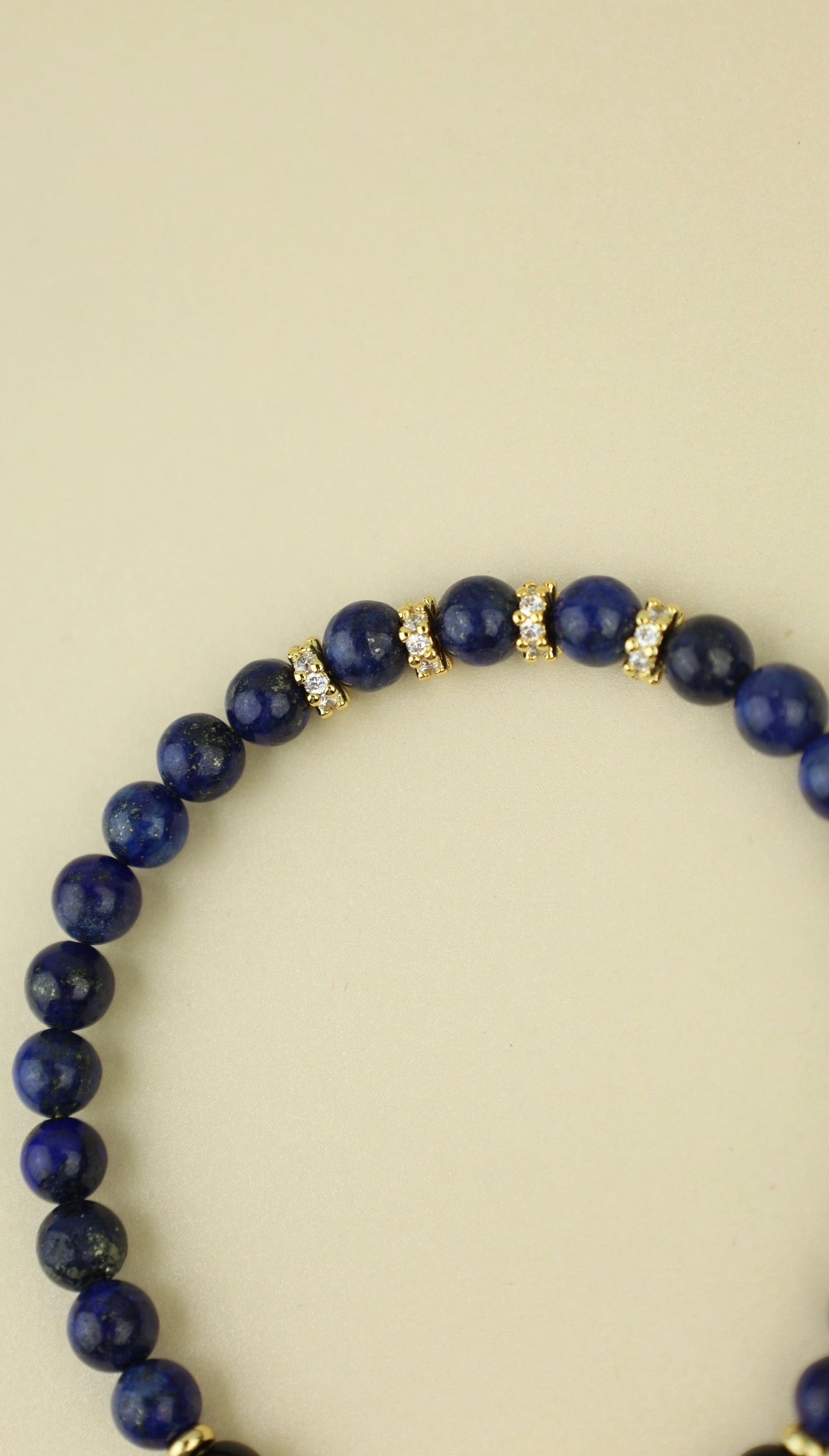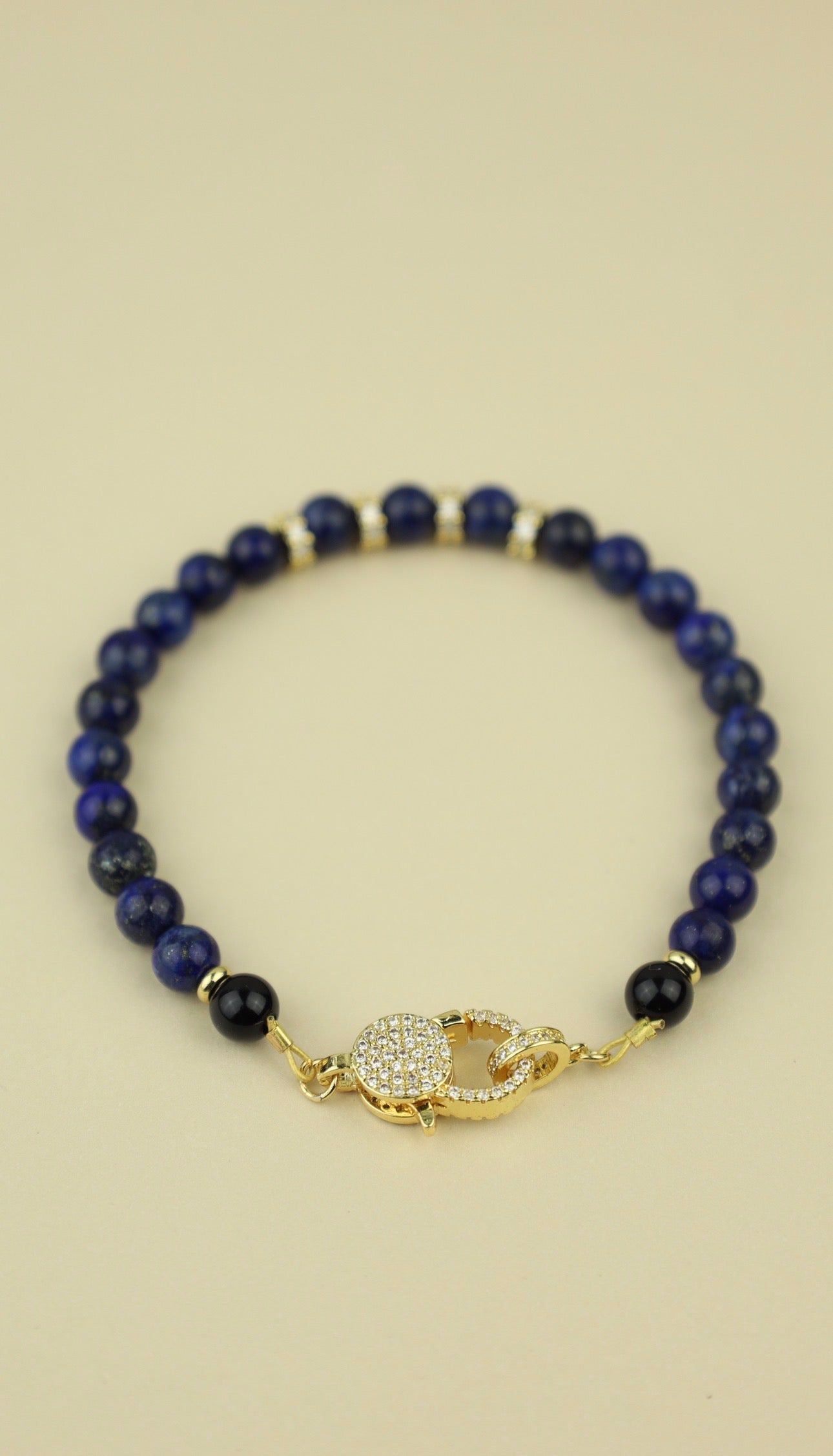 Named for the celestial sky, the Aether Bracelet features deep lapis stones that echo the color of the night above. Finished with pavé accents and a gold clasp, the piece carries a sense of quiet strength and timeless beauty.