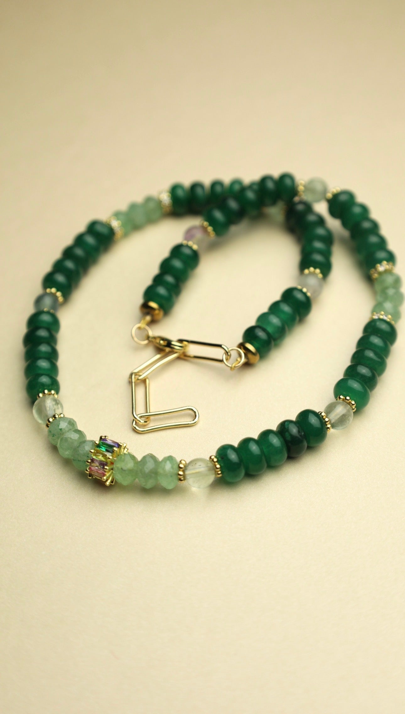Includes Green Jade/Green Agate + 14kt gold-filled clasp and extension.